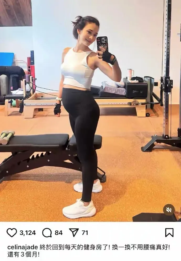 7月16日,卢靖姗在个人社媒上晒出自己7个月挺孕肚健身的自拍,照片中她身穿运动装,四肢纤细状态超好,透露还有3个月生产。